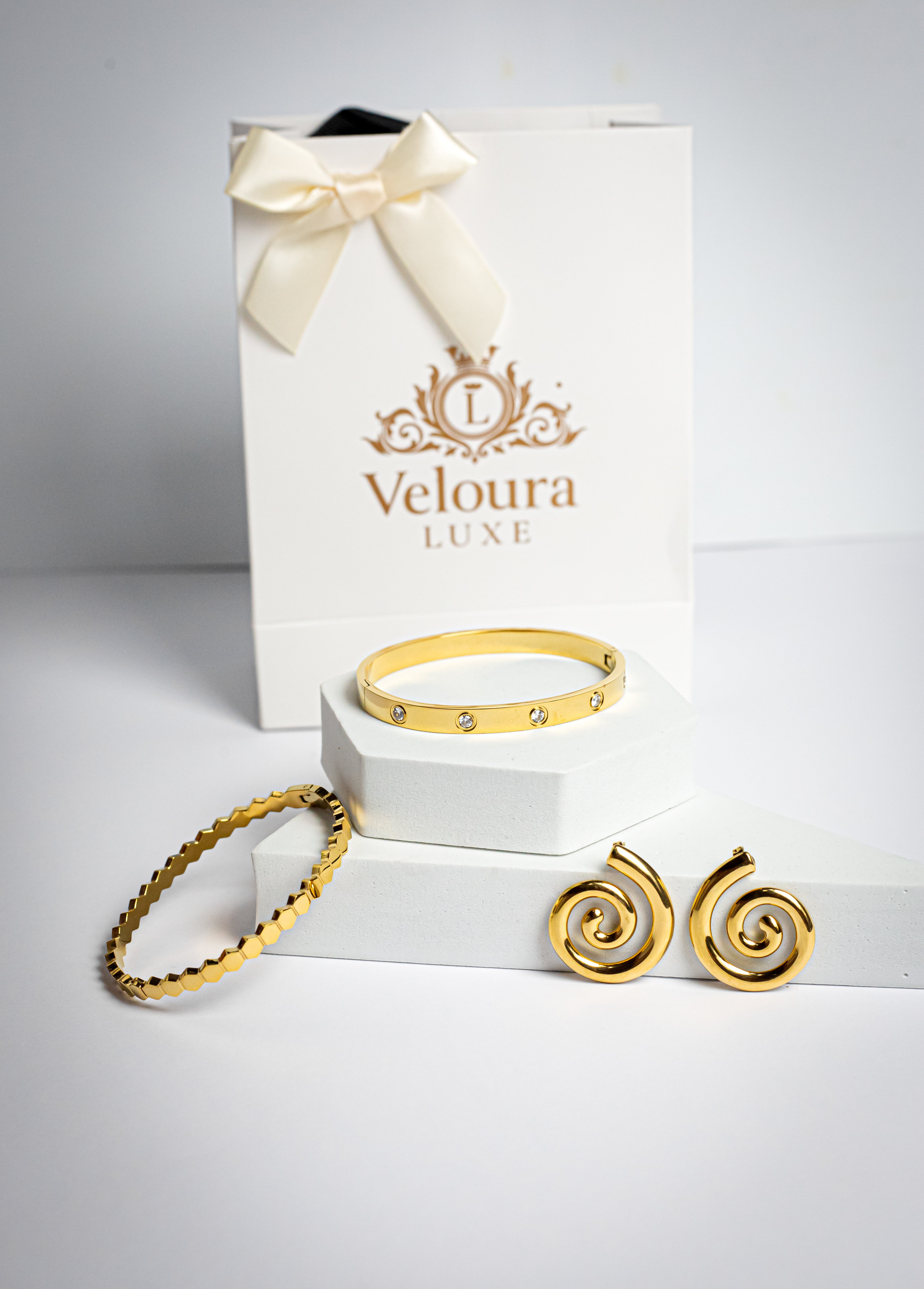 Receive a pair of Veloura Luxe earrings with the purchase of two Daily Collection bracelets. Scroll down to discover the designs.