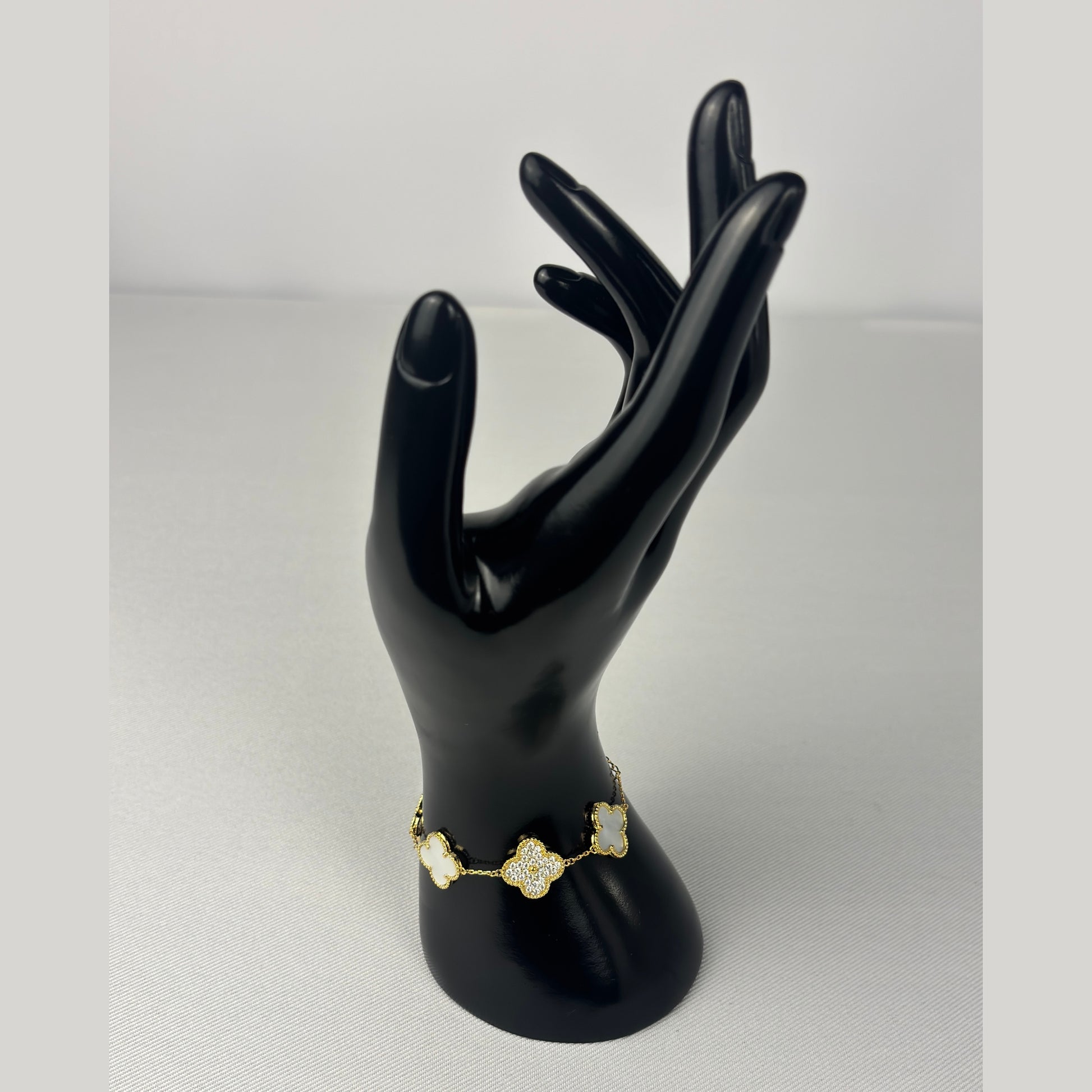 Timeless elegance meets modern luxury. The Pearl Clover Bracelet are crafted from sterling silver plated with 18K gold, featuring the signature clover design in deep black for refined sophistication. Perfect for both everyday wear and special occasions.
